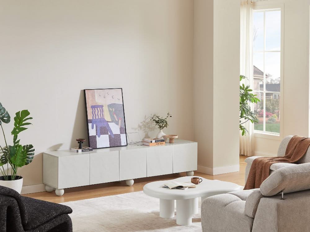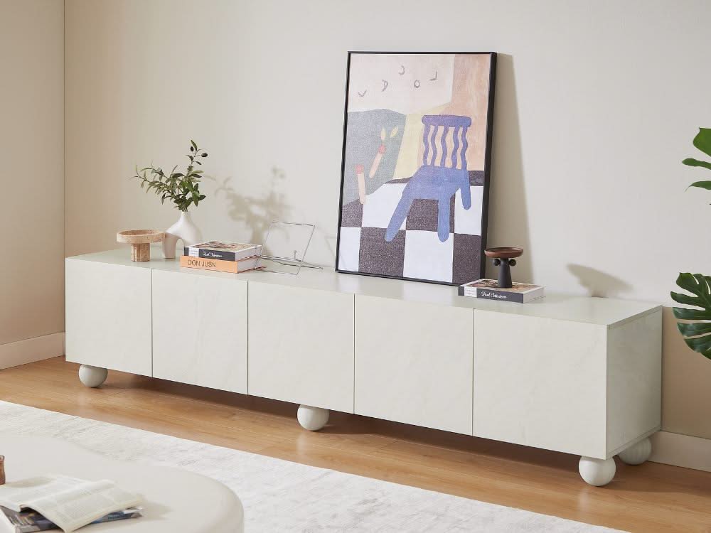 The round legs of the Ally TV unit add a unique twist to the sleek lines of the body, creating an eye-catching detail that fits with the modern look of this trendy piece.