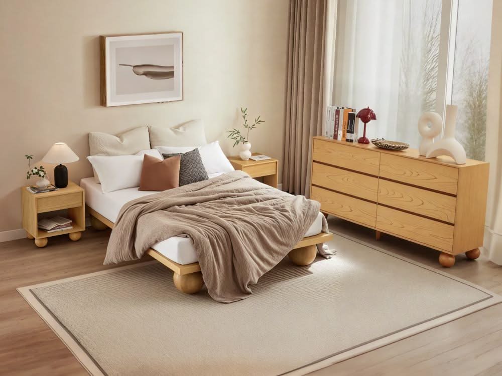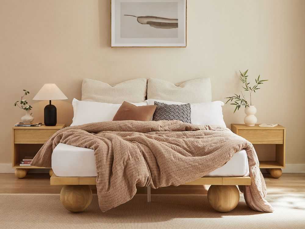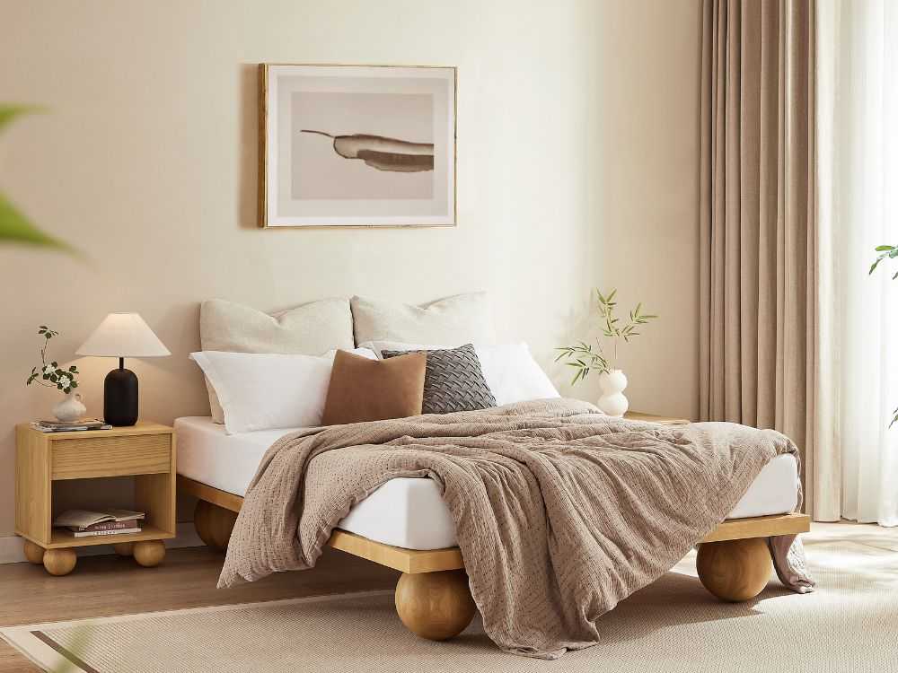 The Ballico timber bed frame encompasses all the things we love about Japandi style with its pared-down design and uncompromising practicality.