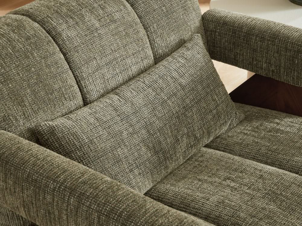 Designed with deep, channel-tufted cushions and soft yet resilient polyester fabric, the Frank Armchair promises long-lasting comfort. Its inviting seat depth and accompanying lumbar pillow offer thoughtful back support, perfect for leisurely lounging or reading your favorite book.