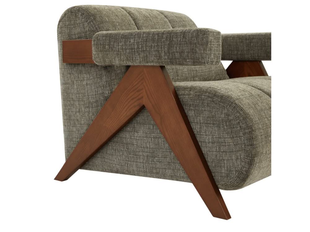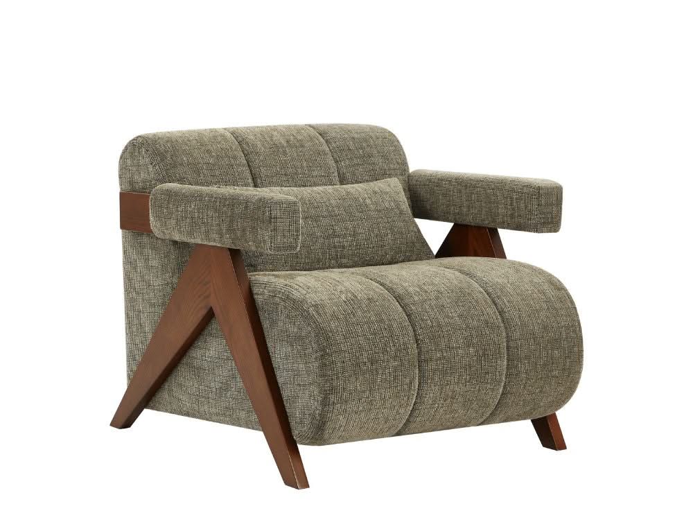 The choice of a rich, muted green fabric lends a refined yet organic touch to the Frank Armchair. This nature-inspired hue blends seamlessly into a variety of interiors, offering a pop of color that remains effortlessly elegant without overpowering the room.