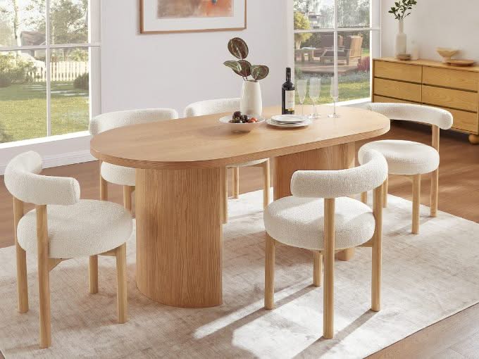 The Hudson dining table's oval shape and concave slab legs add a trendy design statement without overpowering the rest of your decor.