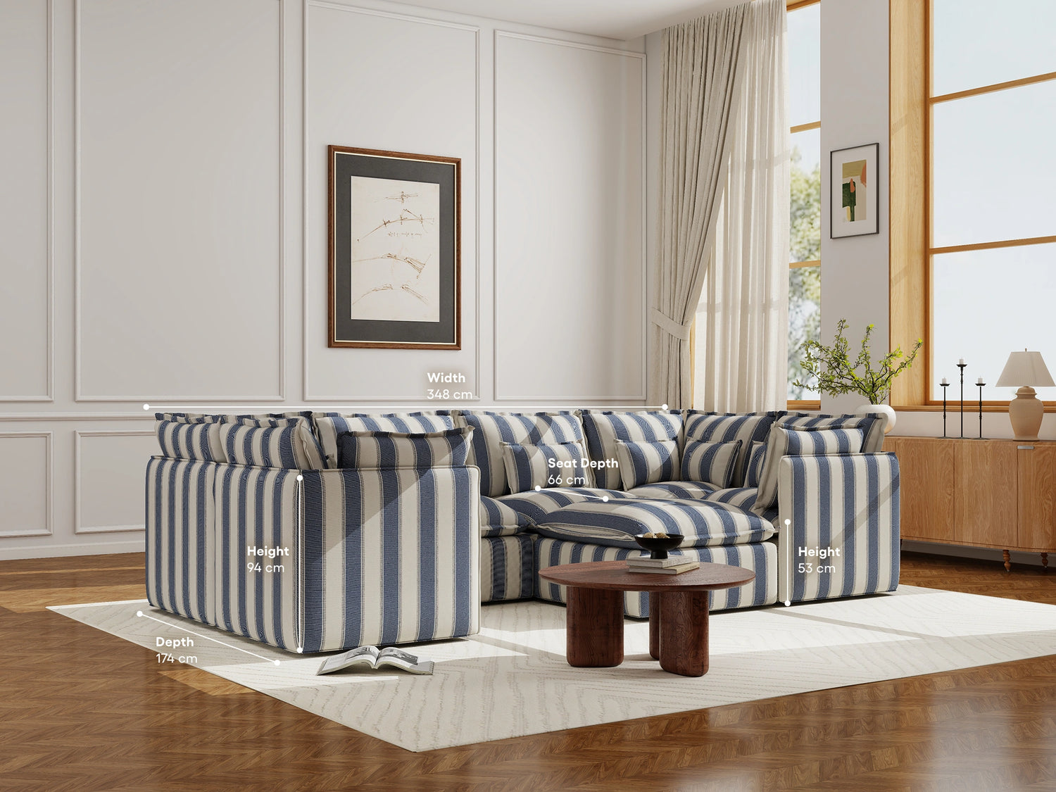 I originally got the 4 seater, I’ve since added two more seats and 2 ottomans. I have 2 toddlers and a dog (and a tradie) AND the white version and I am super impressed with the way it spot cleans. I’ve gotten pen, raspberry and chocolate off without having to wash it in the machine. The pillows get softer everytime we sit on it and it’s firm enough that it has decent support in the back. I hope they bring out more colours! Maybe boucle grey?? Or a chocolate! It has not disappointed me yet!