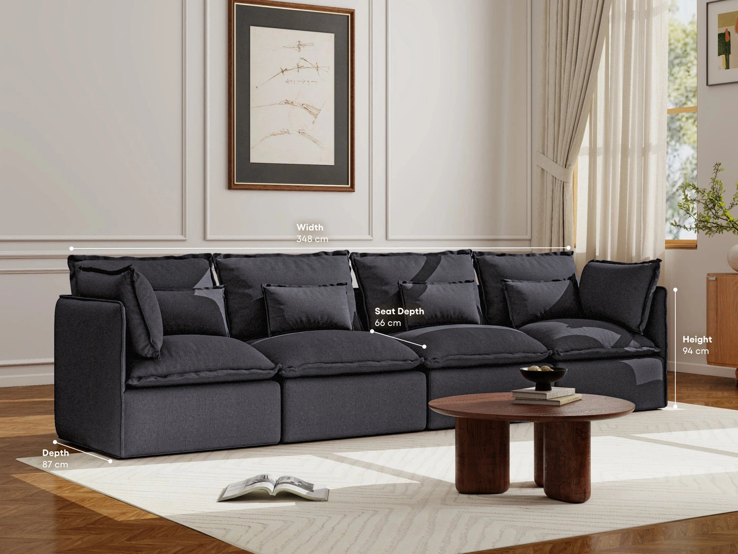 Thank you so much for your honest and thoughtful review. We’re so pleased to hear how much you love the sofa — from the size and comfort to the easy-care fabric and hassle-free assembly, it’s great to know it’s ticking so many boxes for you!
