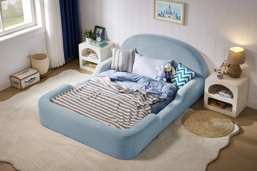 Transitioning to a big-kid bed isn't just about sleeping arrangements; it's about protecting your little ones as they grow. Our bed is designed to eliminate the worry of hard edges and dangerous falls, providing your child with a safe place to dream big.