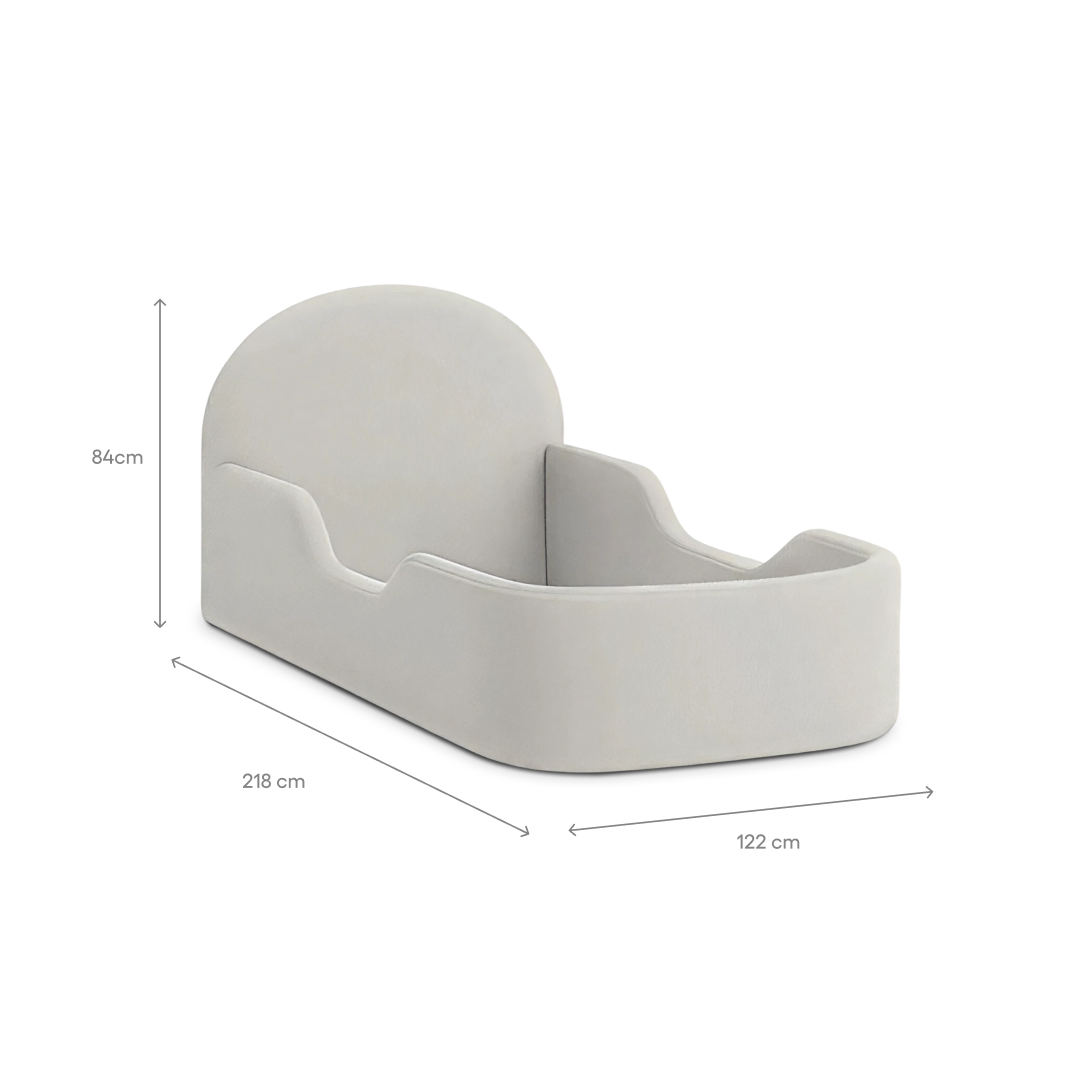 Built for Big Dreams & Little Accidents. Meet the bed that understands real life with real kids. Designed with soft, rounded edges and zero hard materials, the Little Lifely Single Bed (Dove Grey) keeps bumps, bruises, and bedtime stress at bay. Its low-to-the-ground design makes it perfect for toddlers learning independence — without compromising on safety.
