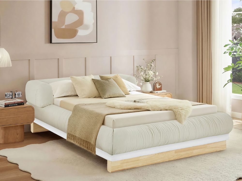 Sink into softness with the Pavia Bed Frame – where pillowy curves meet everyday comfort. Wrapped in irresistibly smooth upholstery and grounded on a sturdy wooden base, this statement piece is designed to elevate your sleep sanctuary with plush presence and effortless elegance. Whether styled with neutral linens or layered textures, Pavia sets the tone for laid-back luxury that still feels polished and refined.