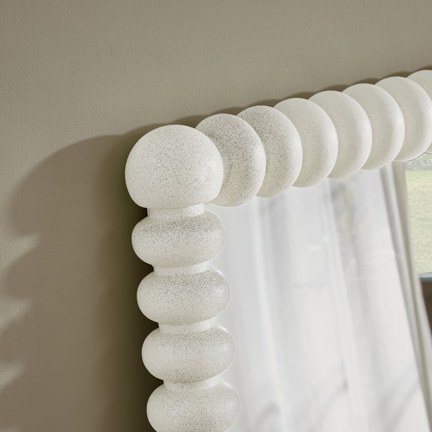 A statement piece with a sculptural twist. The Silvia Floor Mirror blends soft curves with bold proportions, wrapped in a textured, concrete-look finish. It doubles as art and utility amplifying light, space, and style in one effortless frame.