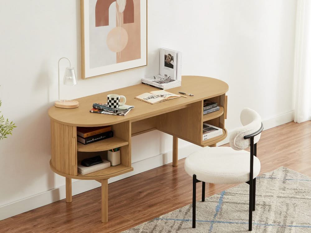 Relaxing and elegant, the mid-century and Japandi styles are all the rage. With its clean lines and elegant curved details, the Tate curved desk is a nod to some of the most sought-after interior design trends and will blend perfectly in any home.